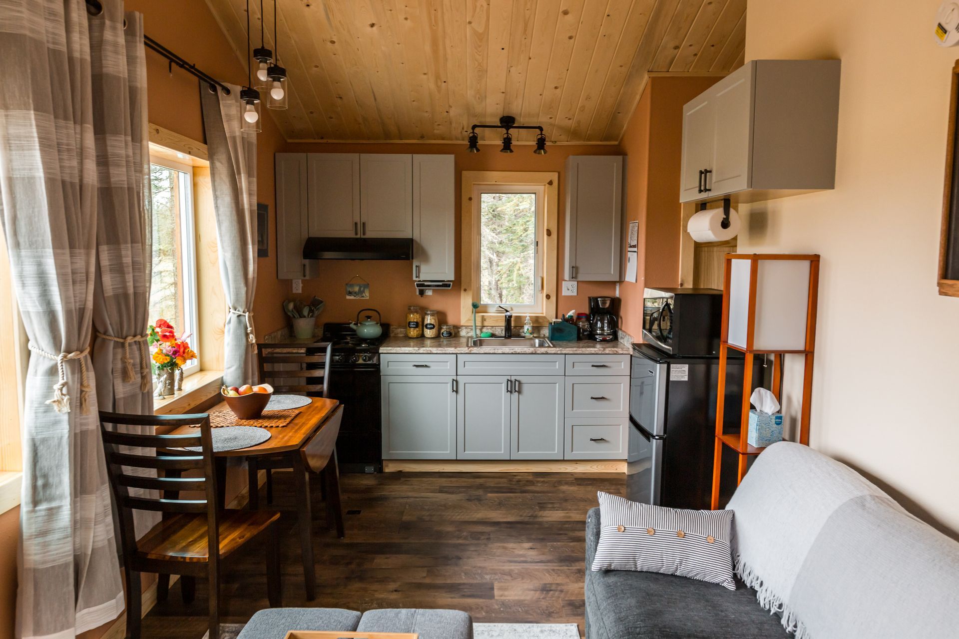 This gorgeous cabin is well appointed with everything you need for your Alaskan vacation, winter or summer, plus a magnificent view of the Alaska Range right out your front door! It has a separate bedroom with king bed, pull out queen sofa, and pull out twin bed. Make your own meals in the full kitchen, or enjoy a bbq with the grill on the deck!